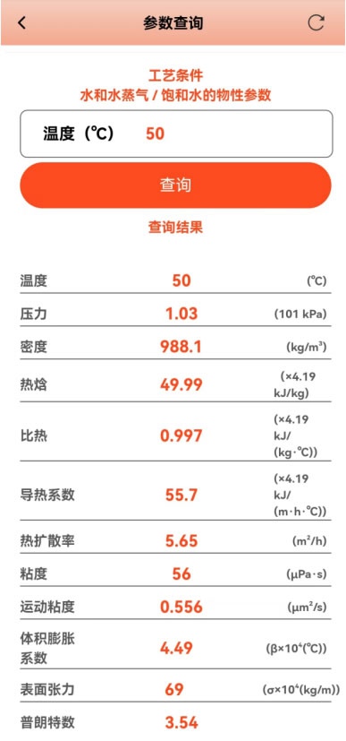 參數(shù)查詢:提供便捷的硫酸數(shù)據(jù)參數(shù)查詢功能,方便用戶快速查閱硫酸的相關(guān)參數(shù),如二氧化硫的水溶液密度、在硫酸中的溶解度;發(fā)煙硫酸不同濃度時(shí)的密度、不同溫度下的濃度、硫的飽和蒸汽密度、水和水蒸氣的物性參數(shù)等等。