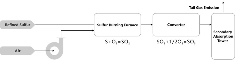 The concentration of SO2 at the outlet of sulfur-burning furnace was determined at the time of design of each sulfur acid making device, and the domestic design was basically determined at f (SO2) 11.5%; Because f (O2) (dry basis) in the air is 20.948%. The sum of the initial SO2 concentration a and the initial oxygen concentration b in the flue gas of sulfur combustion is also constant.