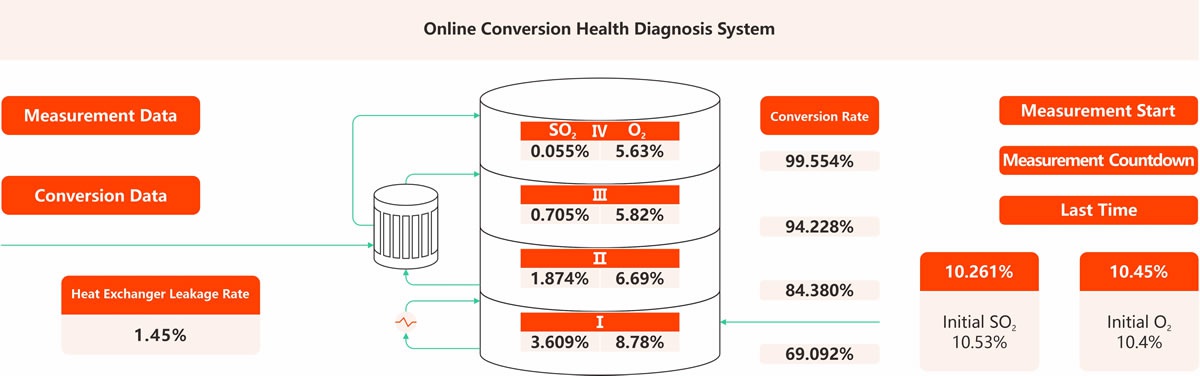 LAS120 online conversion health diagnosis system is composed of micro gas chromatograph, flue gas purification and pretreatment device, conversion health diagnosis software, which is a special health diagnosis system for sulfuric acid plant converter. It is suitable for the measurement of fractional conversion rate and leakage of heat exchangers for sulfuric acid production, smelting flue gas acid production, pyrite acid production, acid gas system acid and waste acid cracking acid production. The LAS120 has the advantages of fast measurement, accurate results and environmental friendliness.