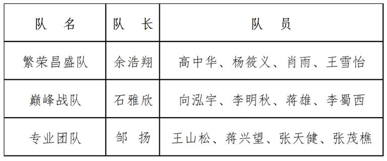 本次比賽分為巔峰戰(zhàn)隊(duì)、專業(yè)團(tuán)隊(duì)、繁榮昌盛隊(duì)三支勁旅參賽: