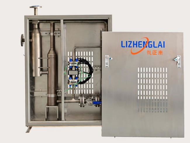 依據(jù)一級(jí)循環(huán)硫酸的物理和工藝特性,禮正來(lái)科技(重慶)有限公司設(shè)計(jì)了一款硫酸超凈穩(wěn)態(tài)氣液分離器,旨在徹底分離一級(jí)循環(huán)硫酸中的空氣,從而消除空氣對(duì)電導(dǎo)率傳感器的干擾。該設(shè)備由兩級(jí)高效氣液分離裝置、虹吸平衡裝置以及相關(guān)附件組成。當(dāng)高溫濃硫酸流入氣液分離器后,首先在一級(jí)氣液分離器中進(jìn)行分離;隨后,流至二級(jí)氣液分離器,在此裝置中,特別設(shè)計(jì)了熱電阻安裝插套,以滿足電導(dǎo)率傳感器進(jìn)行溫度測(cè)量的需求;接著,流經(jīng)電導(dǎo)率傳感器的安裝管線,最終返回至HRS循環(huán)槽。氣液分離器的頂部配備了虹吸平衡裝置,通過(guò)減小管徑的原理,有效減輕了排酸口負(fù)壓對(duì)前級(jí)分離裝置和電導(dǎo)率測(cè)量裝置的不利影響;同時(shí),在氣液分離器內(nèi)部設(shè)置了隔熱板和散熱孔裝置,顯著降低了高溫硫酸散發(fā)的熱量對(duì)傳感器的潛在影響。