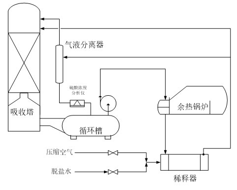 2.在低溫余熱回收系統(tǒng)中,一級(jí)循環(huán)硫酸的運(yùn)行參數(shù)設(shè)定為溫度在180至190攝氏度之間、壓力在0.1至0.2兆帕范圍內(nèi)、流量介于800至1000立方米每小時(shí)、濃度在99.05%至99.15%之間,同時(shí)空氣含量占硫酸量的5%至8%。硫酸濃度分析儀的取樣點(diǎn)位于一級(jí)循環(huán)硫酸主管道進(jìn)入塔體的水平管道處。由于主管道進(jìn)入塔體后緊接的是分酸器,因此分析儀的取樣點(diǎn)壓力基本上等同于分酸器液位的靜壓力。由于稀釋器采用了壓縮空氣霧化脫鹽水以增強(qiáng)擾動(dòng)的技術(shù),導(dǎo)致從稀釋器出來(lái)的循環(huán)硫酸中混入了空氣介質(zhì)。目前使用的電導(dǎo)率傳感器無(wú)法準(zhǔn)確測(cè)量含有空氣介質(zhì)的硫酸濃度。當(dāng)含有空氣介質(zhì)的硫酸流經(jīng)電導(dǎo)率傳感器時(shí),由于空氣不導(dǎo)電,測(cè)得的電導(dǎo)率異常低且不穩(wěn)定。鑒于硫酸濃度越高,其電導(dǎo)率越低的特性,含有空氣介質(zhì)的硫酸通過(guò)電導(dǎo)率傳感器后,測(cè)得的濃度值會(huì)比實(shí)際值偏高,并且存在較大的波動(dòng),從而無(wú)法實(shí)現(xiàn)精確測(cè)量。