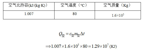 采用熱量公式計(jì)算空氣的總熱量Q=cm△t,查表可得空氣的比熱容。(溫度計(jì)為80℃,忽略壓力變化)