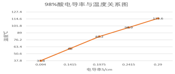 圖3.1 98%酸電導(dǎo)率與溫度關(guān)系圖